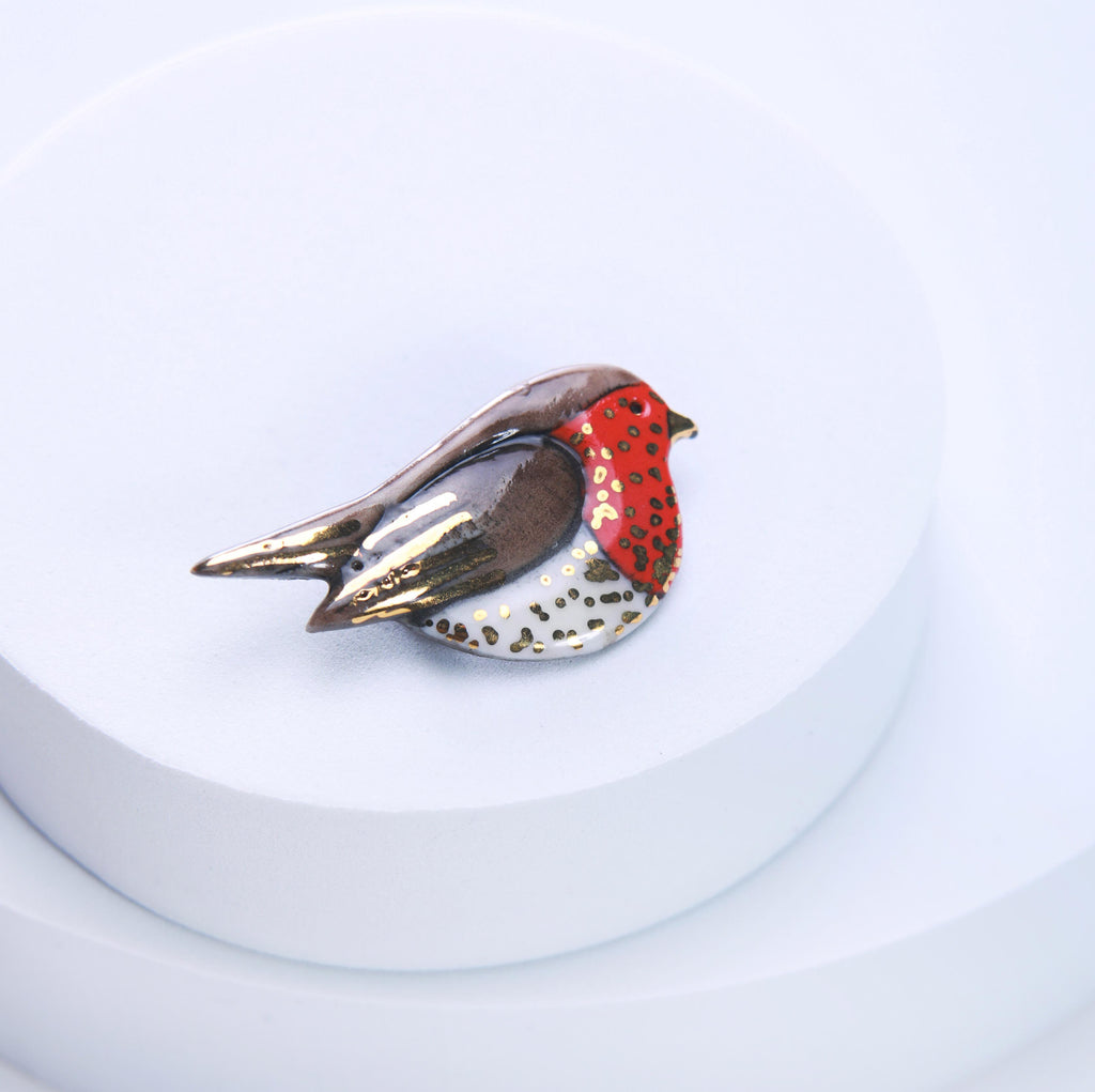 Handmade Robin porcelain jewellery, including brooch pins, earrings and necklaces
